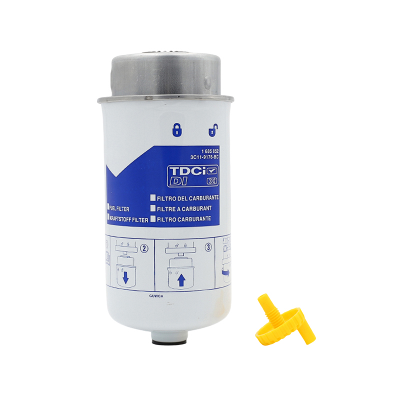 The primary function of a diesel filter is to intercept solid impurities (such as dust and metal particles), organic compounds (such as colloids), and soot in diesel, preventing them from entering the engine and causing wear or clogging the fuel system. It also removes water from diesel to prevent the acid produced by the reaction of sulfur and water from corroding internal engine components. This reduces wear on components like the fuel pump and injectors due to impurities, ensuring fuel injection accuracy and stable engine power output. Depending on diesel quality and environmental conditions, it is recommended that the filter be replaced every 5,000-10,000 kilometers or every 100-200 hours.